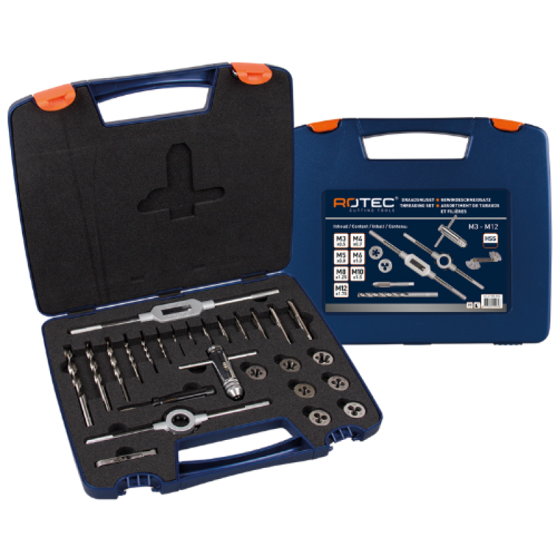 Handtappen-, boren- en snijplatenset, metrisch [M], in kunststof koffer