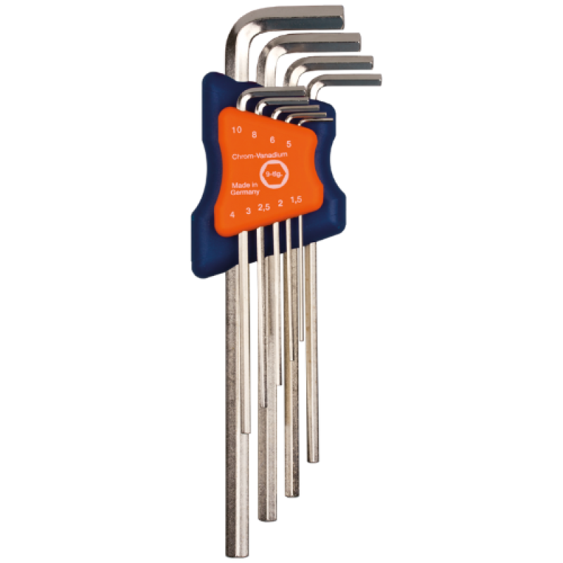 Handige set vernikkelde inbussleutels in compacte houder, lang model, metrisch. DIN ISO 2936L (DIN 911L).