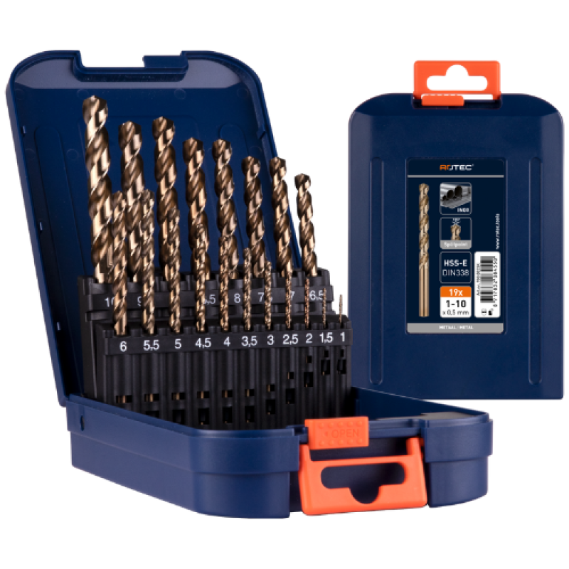 Inhoud: Ø1 t/m Ø10 mm, oplopend per 0,5 mm – 1 boor per maat (totaal 19 stuks)