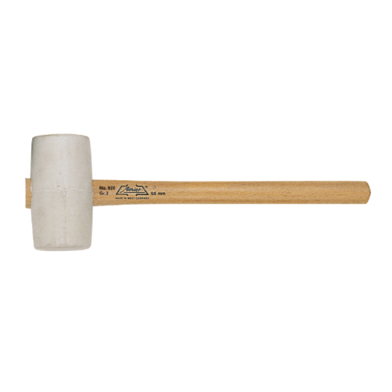 Hamer met rubberen kop en essenhouten steel, natuurlijke witte kleur. Laat geen kleursporen achter.