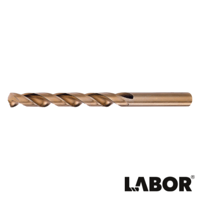 DIN 338, rechtssnijdend, type N, 135° snijhoek met splitpoint, geslepen, M35 staal, 5% cobalt gelegeerd, amber.