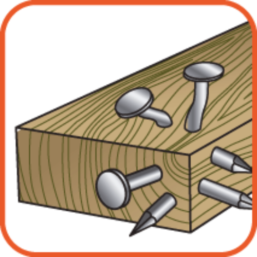 Invallend zagen in hout met spijkers, kunststoffen en nog ferro profielen.